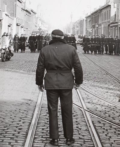 Οι φωτογραφίες που τράβηξε ο Kruger τη δεκαετία του 1950 από τις Κάτω Χώρες, και ιδίως από το Άμστερνταμ, έχουν ιστορικό ενδιαφέρον. Γι’ αυτόν ακριβώς τον λόγο, το 1983, το Αρχείο της πόλης του Άμστερνταμ αγόρασε μια συλλογή φωτογραφιών του που χρονολογούνται από αυτή την περίοδο. Χαρακτηριστική της δουλειάς του Kruger από τη δεκαετία του 1950 είναι η φωτογραφία του από την απεργία των ανθρακωρύχων στο Borinage (Βέλγιο), για την οποία έλαβε το 1961 την Zilveren Camera («Ασημένια φωτογραφική μηχανή»), το βραβείο για την καλύτερη φωτογραφία του ολλανδικού Τύπου της χρονιάς. Η ίδια η φωτογραφία τραβήχτηκε στην πραγματικότητα στις 15 Φεβρουαρίου 1959 στη μικρή πόλη Quaregnon στο Borinage. Δείχνει έναν εργάτη ορυχείου, με την πλάτη προς τον θεατή, ο οποίος στέκεται απέναντι σε μια ομάδα της εθνικής αστυνομίας που κλείνει τον δρόμο προς τη Mons. Η απειλή που αποπνέει αυτή η φωτογραφία δεν προκύπτει απλώς από τη φύση του γεγονότος, αλλά και από τον τρόπο με τον οποίο παρουσιάζεται. Το πιο σημαντικό είναι η σχέση μεταξύ των δύο στοιχείων της εικόνας: από τη μία πλευρά η αστυνομία, από την άλλη ο εργάτης του ορυχείου. Οι γραμμές του τραμ ενώνουν αυτά τα δύο στοιχεία δημιουργώντας ένα συνδεδεμένο σύνολο: αποτελούν τον κεντρικό άξονα της εικόνας και δίνουν κατεύθυνση στο συγκεκριμένο γεγονός. Η αντίθεση μεταξύ των δύο πολιτικών θέσεων αναπαρίσταται όχι μόνο μεταφορικά, αλλά και κυριολεκτικά. Η εικόνα αυτή αποτελεί μέρος μιας μεγάλης σειράς φωτογραφιών για την απεργία του Borinage.
