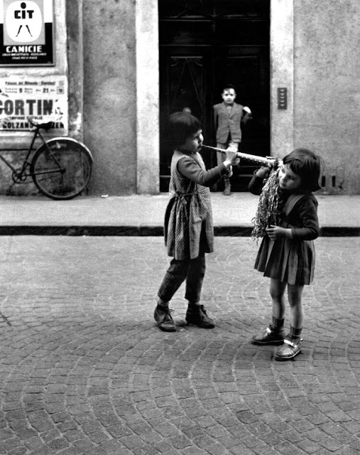 Μερικές από τις πιο ενδιαφέρουσες φωτογραφίες του σχεδιάστηκαν ως ακολουθίες που παρουσιάζουν μια αφήγηση από την αρχή μέχρι το τέλος. Μια σειρά τεσσάρων εικόνων με τίτλο Le mani parlano (Τα χέρια μιλούν) 1956 απεικονίζει τρεις Ιταλίδες γυναίκες εμπλεκόμενες σε έναν διάλογο – μια αξιοσημείωτη μελέτη των εκφράσεων του προσώπου και των χειρονομιών που δεν χρειάζονται εξήγηση κειμένου.