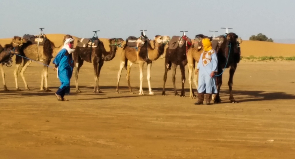 Αμμόλοφοι της Σαχάρα. Μοναδική εμπειρία. Καμήλες καμηλιέρηδες με τα φανταχτερά τουρμπάνια που με αυτά καλύπτουν το πρόσωπο για να προστατεύονται από τις αμμοθύελλες.