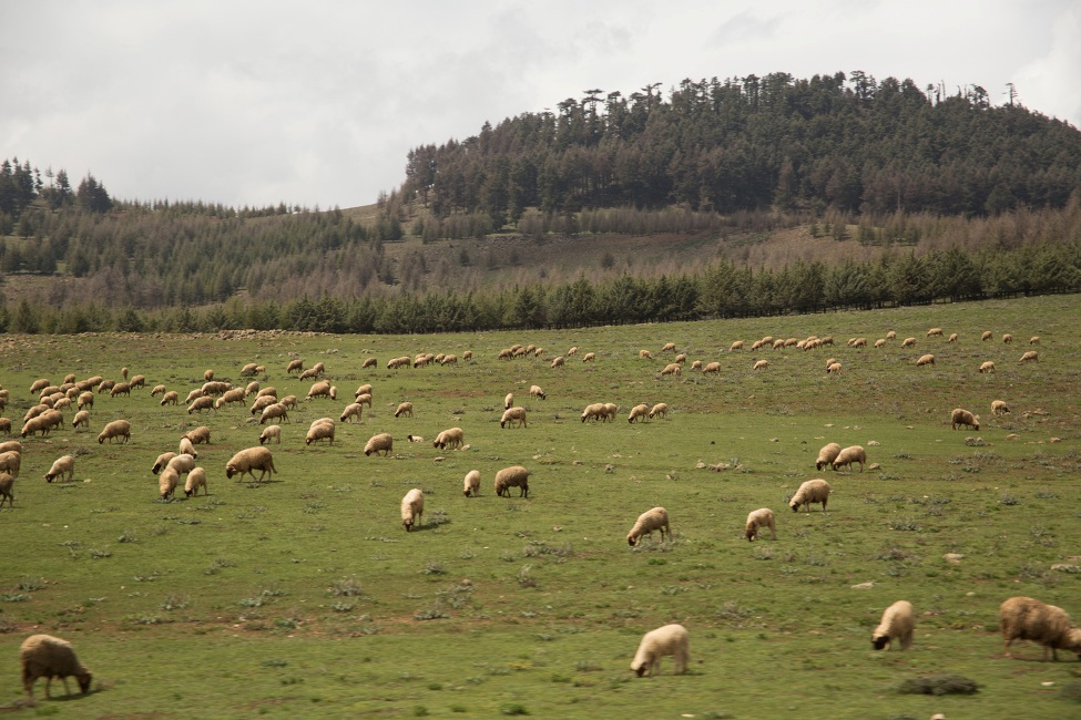 Μεγάλος Άτλαντας. Ορεινός όγκος με ποτάμια, χωριά και κοπάδια με πρόβατα.