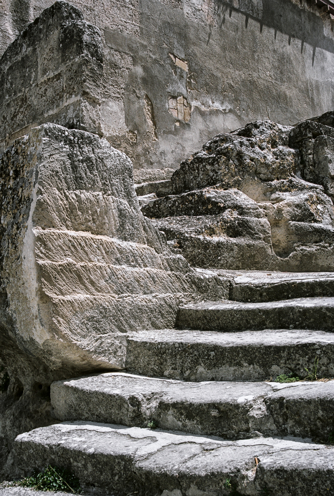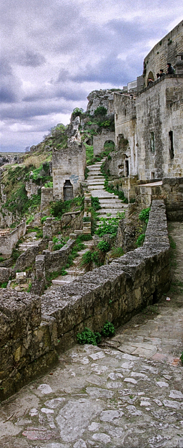 Στενά δρομάκια, σκάλες και μονοπάτια λιθόστρωτα. Ξώπορτες πολυκαιρισμένες, χωνευτά μαγαζάκια στους βράχους, καμάρες , φιγούρες και σύμβολα σκαλισμένα σε προσόψεις, μικρές πλατείες, γειτονιές: το βιβλικό σύμπαν των Sassi di Matera.