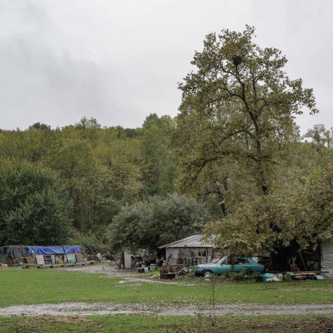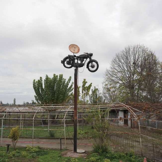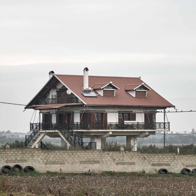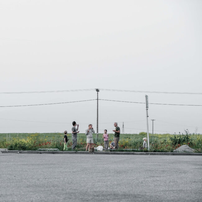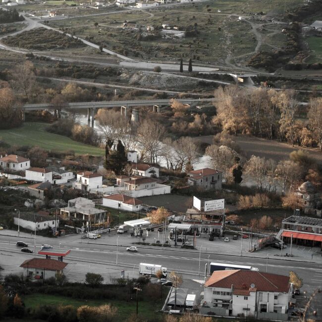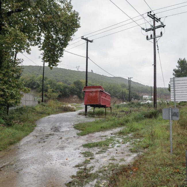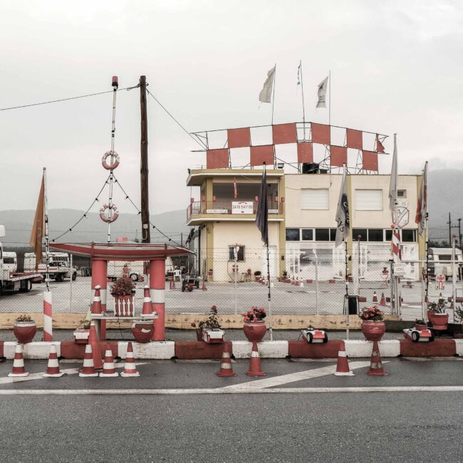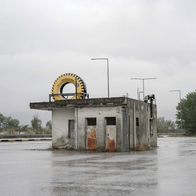 Δομικά έργα, ολοκληρωμένα ή μη, αυθαίρετες παρεμβάσεις και ιδιοκατασκευές απροσδιόριστης χρήσης συνθέτουν ένα περιβάλλον αποτελούμενο από δύο βασικά χαρακτηριστικά. Αφενός τη διαρκή μεταβολή του τοπίου, είτε λόγω ανθρώπινων παρεμβάσεων είτε γιατί απλώς το αποφασίζει η φύση και, αφετέρου, την τυχαιότητα με την οποία κάποιες από αυτές συμβαίνουν. Εγκαταλειμμένοι χώροι εστίασης, ερειπωμένα νυχτερινά clubs και μικρά βενζινάδικα μαρτυρούν τις αλλαγές που έχουν συμβεί, και συνεχίζουν να συμβαίνουν, σε κοινωνικό και πολιτισμικό επίπεδο στη χώρα. Οι σταθμοί εξυπηρέτησης αυτοκινητιστών (Σ.Ε.Α.), που υπάρχουν κατά μήκος της εθνικής οδού σε καθορισμένα σημεία, παίζουν πια το ρόλο του εμπορικού κέντρου, έχοντας αντικαταστήσει τα πολύ μικρότερα και διάσπαρτα κατά μήκος της οδού καταστήματα, που εξυπηρετούσαν τους διερχόμενους οδηγούς, ενώ η εγκατάλειψη των επαρχιακών μεγάλων νυχτερινών clubs φανερώνει αφενός την αλλαγή στον τρόπο διασκέδασης και αφετέρου την τουριστική ερήμωση που έχει συντελεστεί σε μεγάλο μέρος της επαρχίας.Η νέα μορφή που πήρε ο αυτοκινητόδρομος με την ολοκλήρωση των έργων υποδομής δεν περιόρισε χιλιομετρικά τη διαδρομή. Την έκανε πιο ασφαλή, πιο ξεκούραστη και γρήγορη, ίσως όμως και πιο άχαρη και βαρετή, καθώς η ασφάλεια συνεπάγεται λιγότερη ζωή στον δρόμο. Μια διαδρομή τυποποιημένη, είτε όσον αφορά το τοπίο είτε ως συνολικά παρεχόμενη εμπειρία, που κατέστη σταδιακά μη φιλική στην όποια απόπειρα ενός roadtrip, στρέφοντας το ενδιαφέρον μόνο στον προορισμό και όχι στο ταξίδι αυτό καθαυτό, βοηθώντας τους οδηγούς απλώς να μεταφέρονται από μία περιοχή σε μια άλλη. Για τον λόγο αυτό, οι τυχαίες στάσεις που έκανα παλιότερα στο δρόμο αντικαταστάθηκαν, στην πλειοψηφία τους, από αντίστοιχες προγραμματισμένες. Η εξερεύνηση των περιοχών γύρω από τον αυτοκινητόδρομο έγινε πιο περίπλοκη και χρονοβόρα ως διαδικασία, με τη διαδρομή, αρκετές φορές, να διαρκεί ως και δώδεκα ώρες, όσο υπήρχε φυσικό φως δηλαδή. Η χρήση των χαρτών της Google κατέστη απαραίτητο βοήθημα για την ομαλότερη πλοήγησή μου, ενώ πολλές φορές χρειάστηκε να περάσω πολλές ώρες μπροστά στον υπολογιστή σε street view mode, αντιπαραβάλλοντας τις σημειώσεις μου για να προετοιμάσω ένα ταξίδι, υπολογίζοντας τη διαδρομή και τον χρόνο που αυτό κάθε φορά χρειαζόταν.Οι εικόνες του «Γύρω από τη γραμμή» δημιουργήθηκαν στο πλαίσιο των προγραμματισμένων ή μη ταξιδιών μου από και προς τη Θεσσαλονίκη τα τελευταία δέκα χρόνια, και πραγματοποιήθηκαν επί του εθνικού αυτοκινητόδρομου Αθηνών – Θεσσαλονίκης, στις περιφερειακές οδούς γύρω από αυτόν, καθώς και στους γύρω οικισμούς και τα γειτονικά χωριά.Λευτέρης Παρασκευαΐδης
