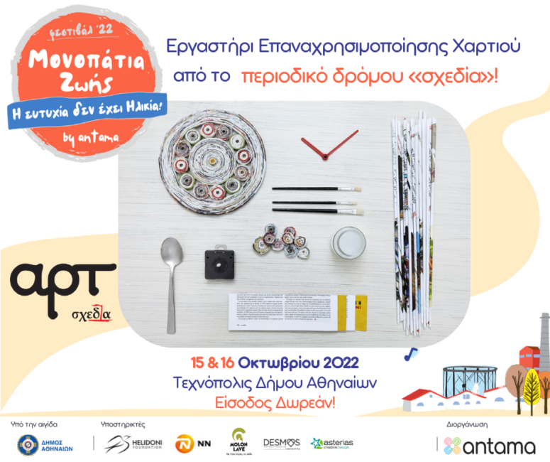 Στις 15 & 16 Οκτωβριού, το Φεστιβάλ «Μονοπάτια Ζωής» από την ΑΝΤΑΜΑ, υπό την Αιγίδα του Δήμου Αθηναίων και με τη συνεργασία περισσότερων από 30 Οργανισμών, Φορέων της Κοινωνίας των Πολιτών και απλών πολιτών, θα αποτελέσει σημείο συνάντησης διαφορεικών γενεών στην Τεχνόπολη Δήμου Αθηναίων.
