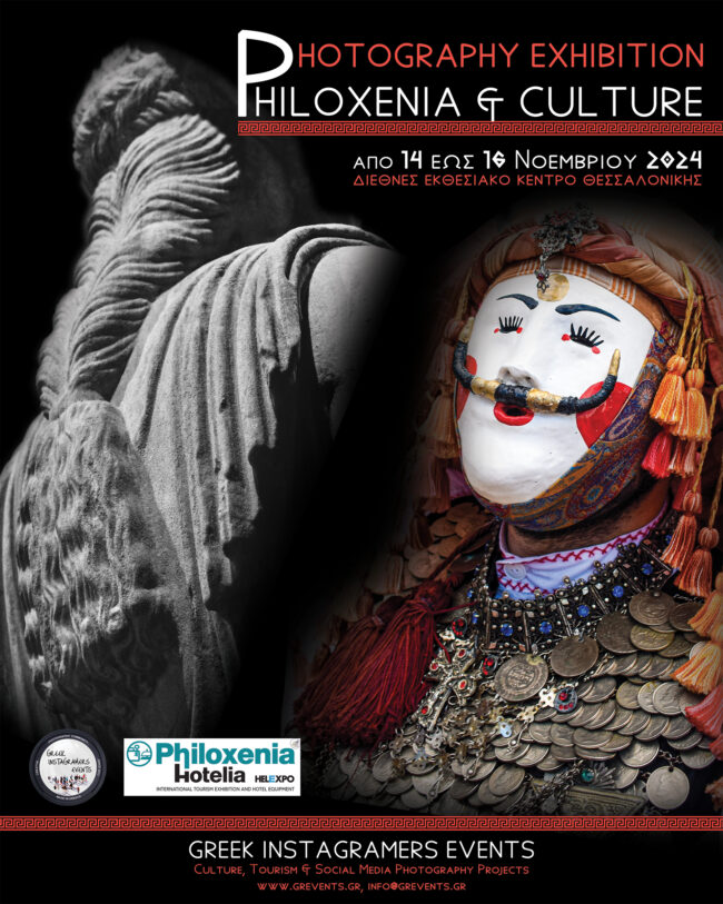 Η κοινότητα Greek Instagramers Events σε συνεργασία με την ΔΕΘ HELEXPO και την 39η Διεθνή Έκθεση Τουρισμού Philoxenia Hotelia, παρουσιάζουν την ομαδική έκθεση φωτογραφίας “Philoxenia & Culture”. Μια ξεχωριστή έκθεση που καλεί τους επισκέπτες να ανακαλύψουν την πολιτιστική ψυχή της χώρας μας και τον διαχρονικό δεσμό των Ελλήνων με τις ρίζες και την ιστορία τους.