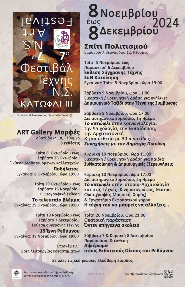 To 7ο Φεστιβάλ Τέχνης, Ν.Σ. / 7ο N.S. Art festival, με το γενικό θέμα «Κατώφλι ΙΙΙ» και η ΛRT Gallery Μορφές παρουσιάζουν την έκθεση φωτογραφίας του Μανώλη Καραταράκη με τίτλο «Το τελευταίο βλέμμα»