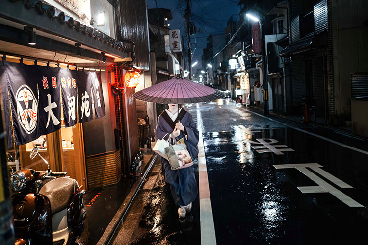 Jonathan Jasberg – USA – An Apprentice Geisha Walks to an Appointment on a Rainy Night in Kyoto, Japan