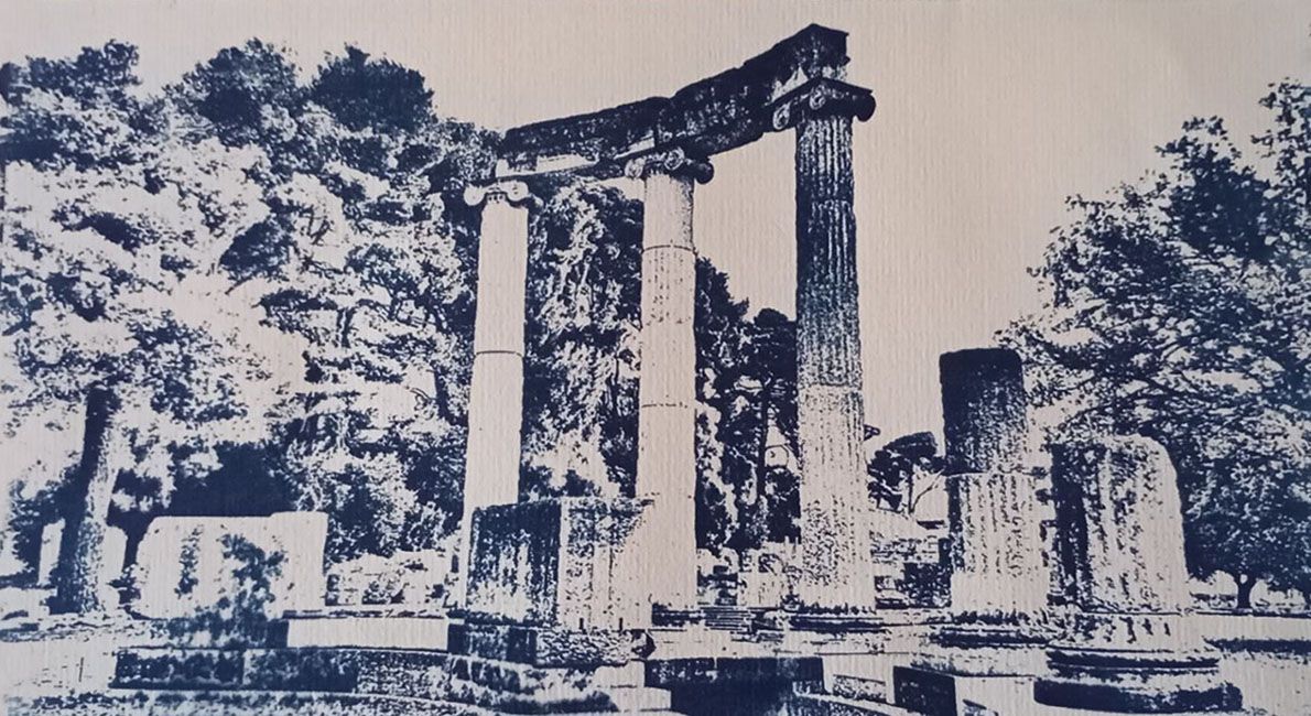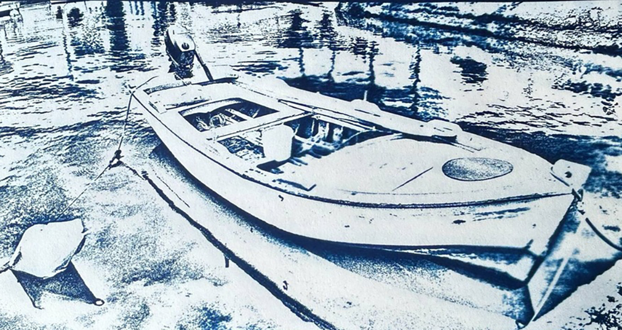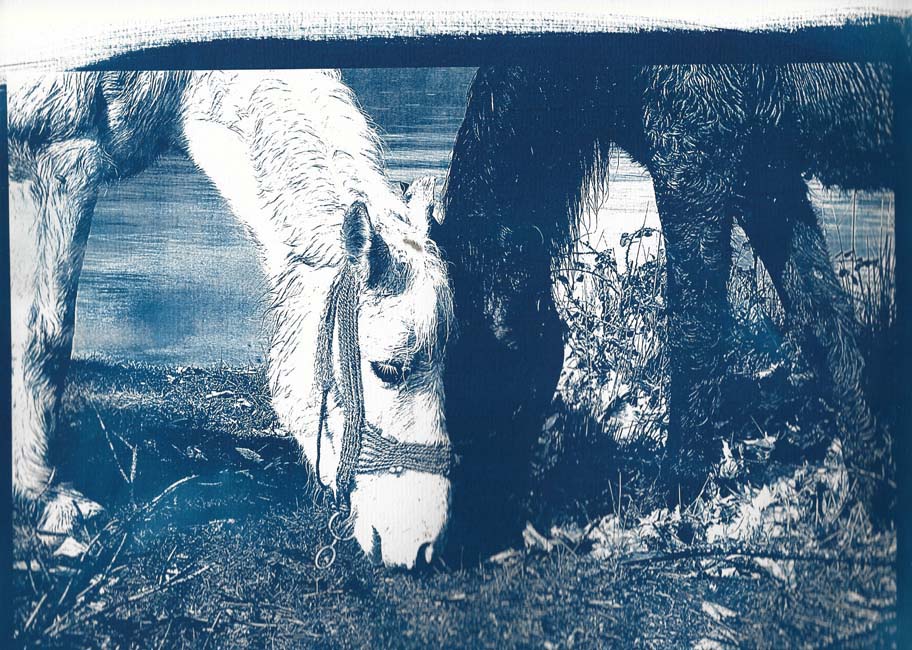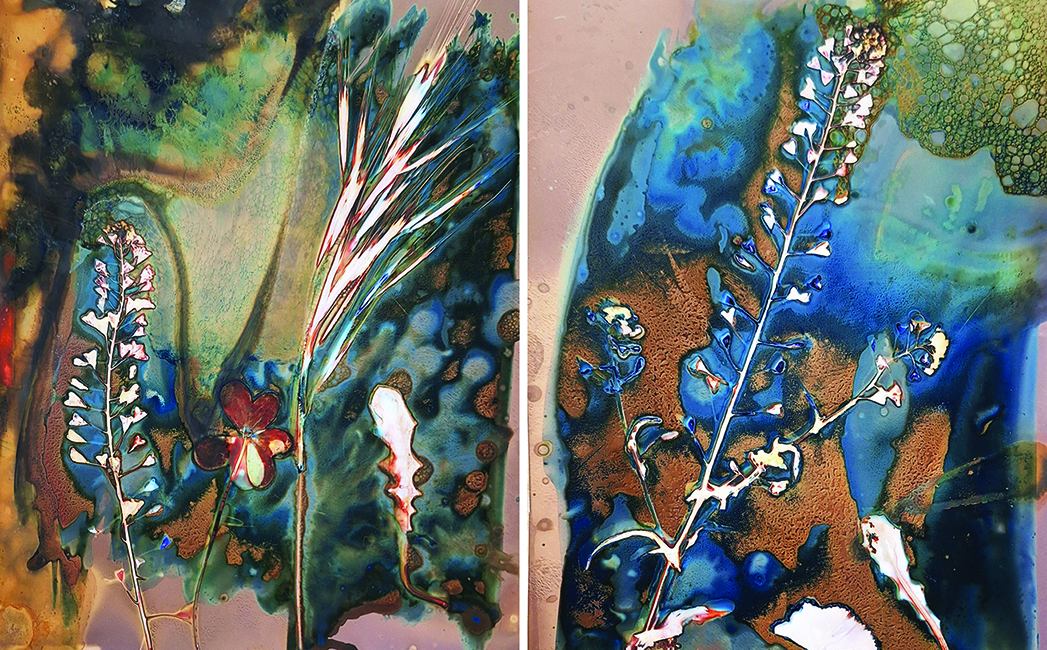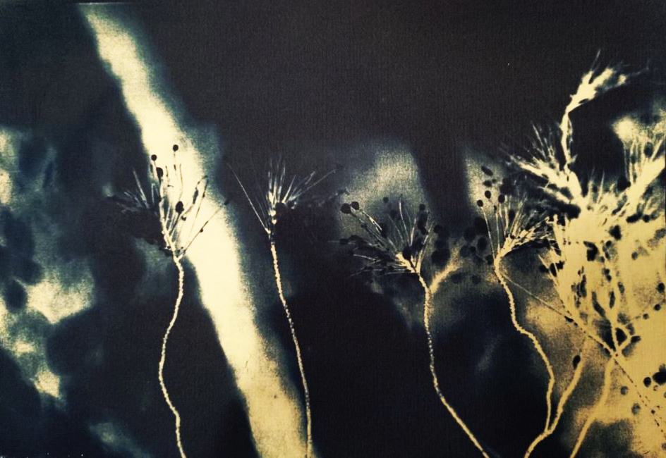 Η έκθεση περιλαμβάνει φωτογραφίες που τυπώθηκαν στον σκοτεινό θάλαμο του εργαστηρίου με την αναλογική μέθοδο των αρχών του 19ου αιώνα, την Κυανοτυπία. Η τεχνική της κυανοτυπίας (Cyanotype) εφευρέθηκε από τον Sir John Herschel το 1842, προσπαθώντας να βρει έναν γρήγορο και εύκολο τρόπο να αντιγράφει τις σημειώσεις του. Αργότερα η Anna Atkinhs (1799 – 1871), αγγλίδα βοτανολόγος, χρησιμοποίησε συστηματικά την κυανοτυπία για να εικονογραφήσει ένα βιβλίο της.