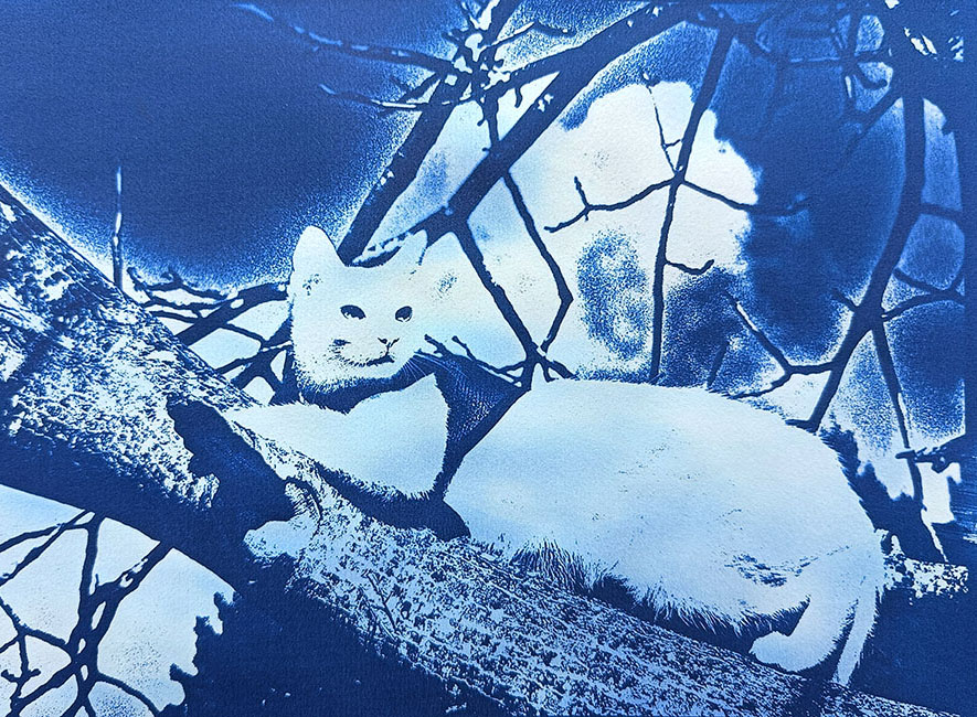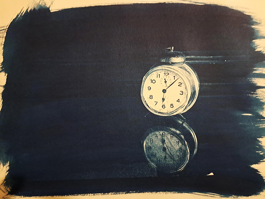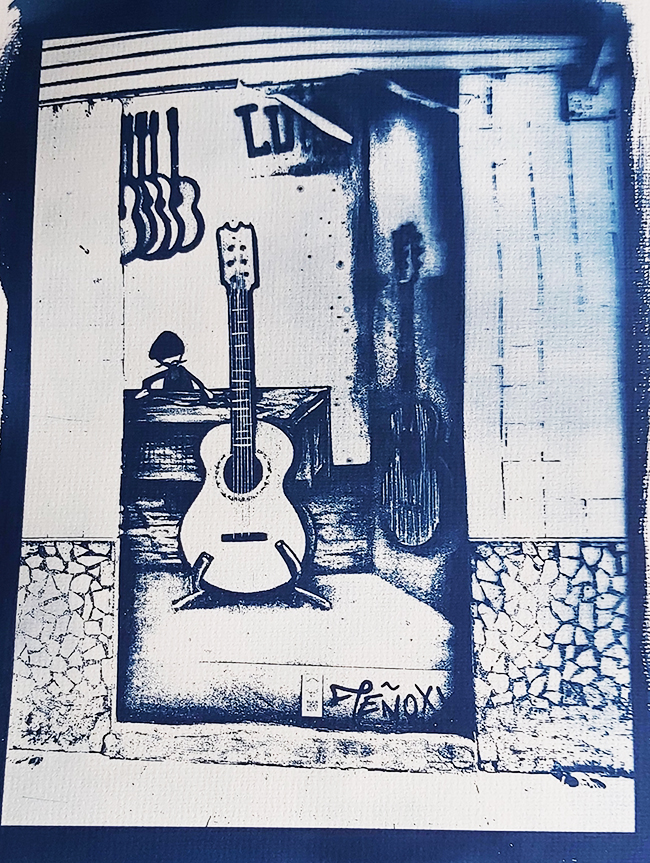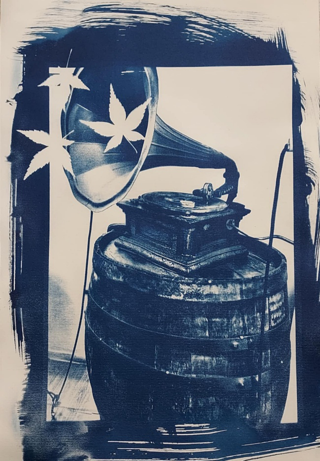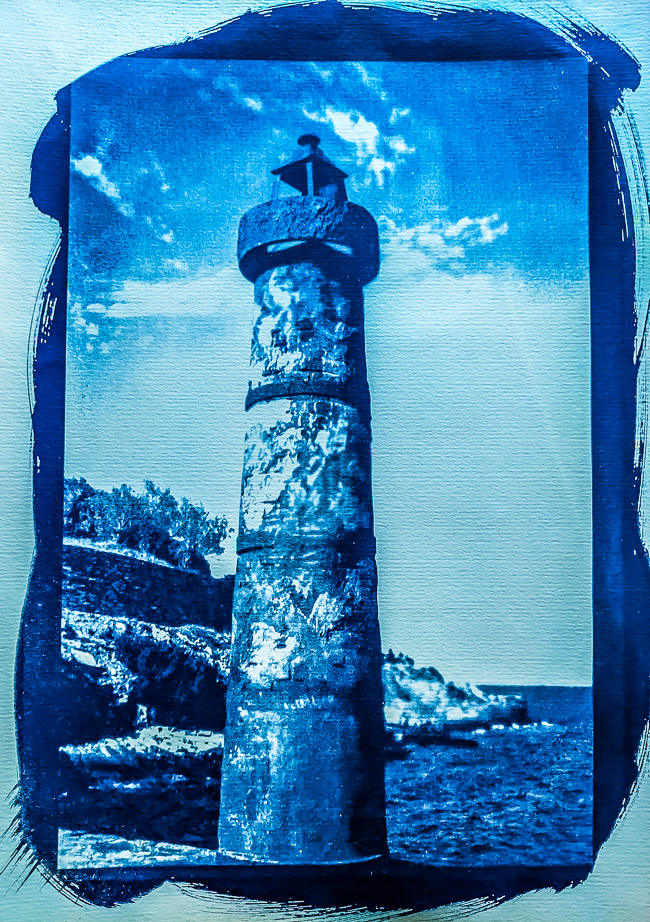 Είναι μία μέθοδος αναλογικής φωτογραφικής εκτύπωσης με τη χρήση μιας χημικής ένωσης του σιδήρου η οποία αντιδρά στο φως του ήλιου (ακτίνες UV) και στη συνέχεια μετατρέπεται σε μπλε χρώμα. Έτσι, παίρνουμε  «ατμοσφαιρικές» εικόνες που δημιουργούνται από μπλε και λευκούς τόνους, ενώ παράλληλα η αφηρημένη μονοχρωμία του μπλε σε ταξιδεύουν σε έναν ονειρικό κόσμο.