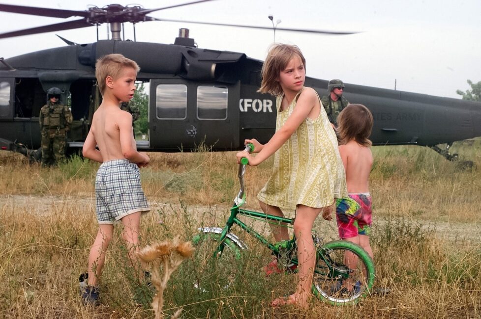 Νίκος Γιακουμίδης, Παιδιά χαζεύουν ελικόπτερο του ΝΑΤΟ, Σκόπια, Ιούνιος 2003