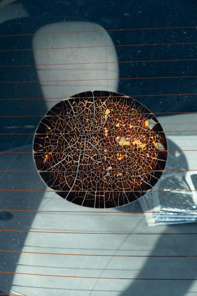 Titanium X takes the viewer through the streets of Athens via a study of bruised and damaged cars. The abstract photographs close in on details, exploring fragility and physical memory. The sunburnt, scratched, crashed and hastily repaired surfaces of Athenian automobiles become the artist’s canvas.