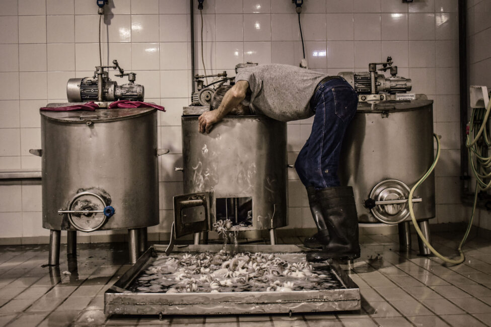Penetrating gazes are captured in heart clicks, as we soak in the energy of the night by the waves. The sounds of the auction and the seagulls create a unique setting, where Egyptian workers prepare the cuttlefish for their breakfast.
