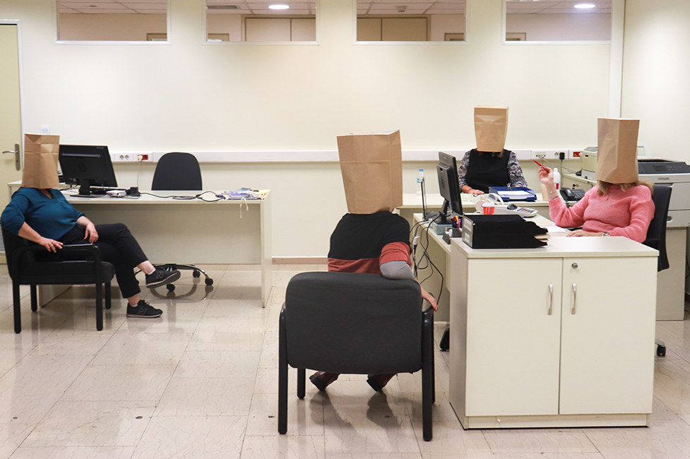 Είναι η μάσκα, πίσω από την οποία ζούμε, υιοθετώντας τους ρόλους και τα χαρακτηριστικά της θέσης στην οποία βρισκόμαστε ειδικότερα στον εργασιακό μας χώρο, και ανάλογα με το προσωπείο που θέλουμε να παρουσιάσουμε σε κάθε περίπτωση αλληλεπίδρασης με τους συναδέλφους μας. Οι συνθήκες πολλές φορές είναι δύσκολες και τα ωράρια εξαντλητικά, με αποτέλεσμα, εκτός του ότι μπορεί να επηρεαστεί η αποδοτικότητα και η μεταξύ μας ομαδικότητα, να αναγκαζόμαστε να κρυβόμαστε έτσι ώστε να μην αποκαλύπτουμε τις εσωτερικές πτυχές του εαυτού μας και να δημιουργείται η απομάκρυνση μεταξύ μας.