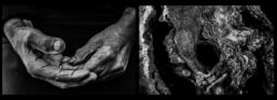 I instinctively seek, through the images, to share the moment when the test of time becomes an ally in the animate and inanimate body. The rosy hands look like centuries-old olive roots, the wrinkles on an old body are identified with the folds of a plant. The stigmas of time on people and objects are the imprint of life, the essence itself, the quintessence of objects, whatever they are, dense foliage or the pulsating human flesh.